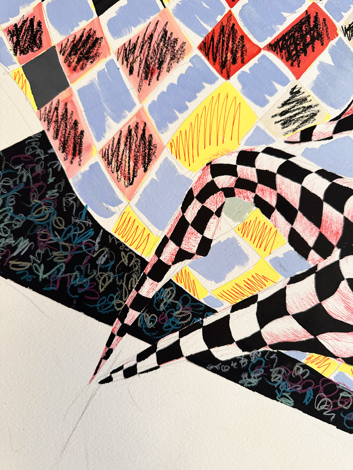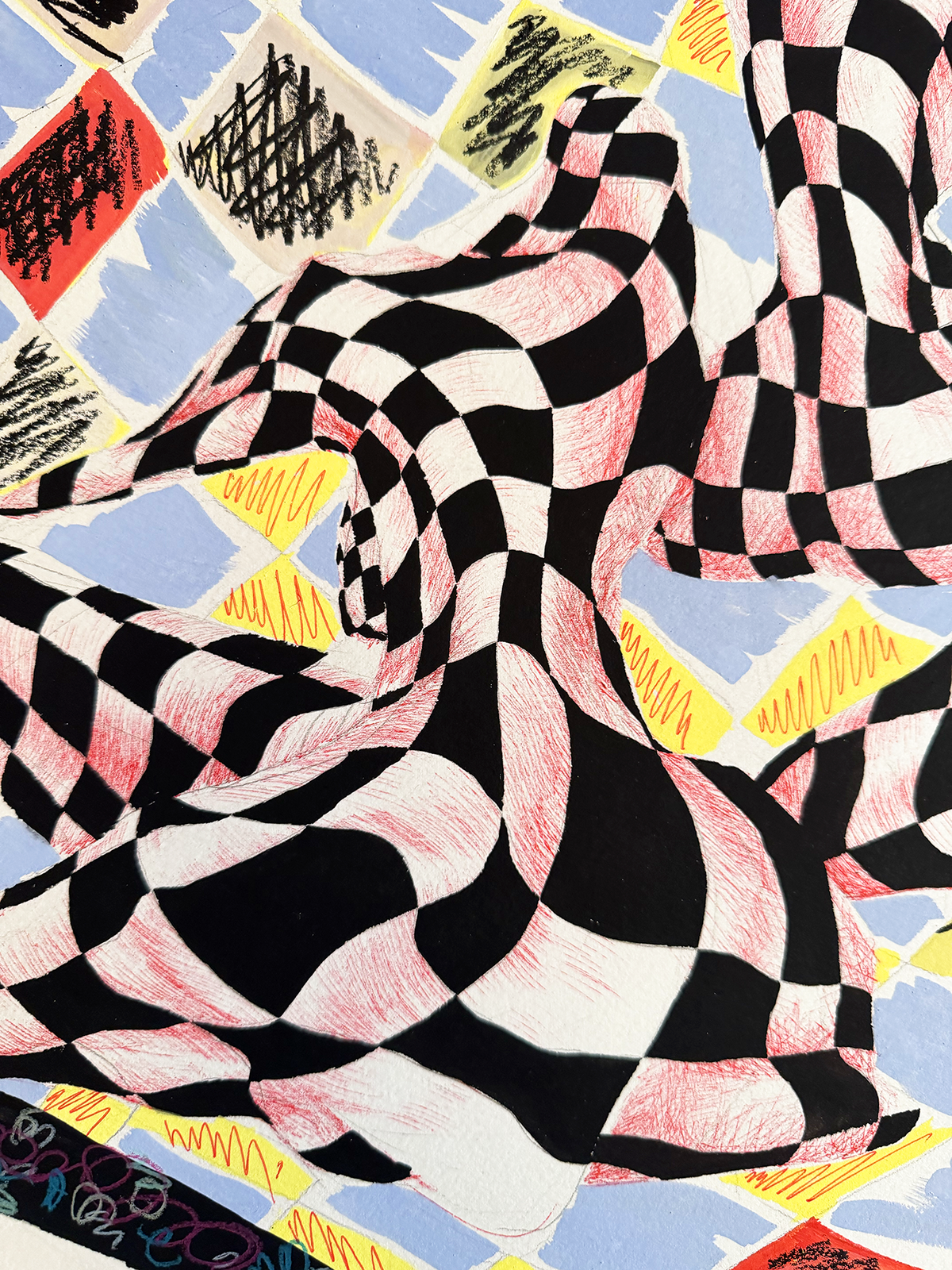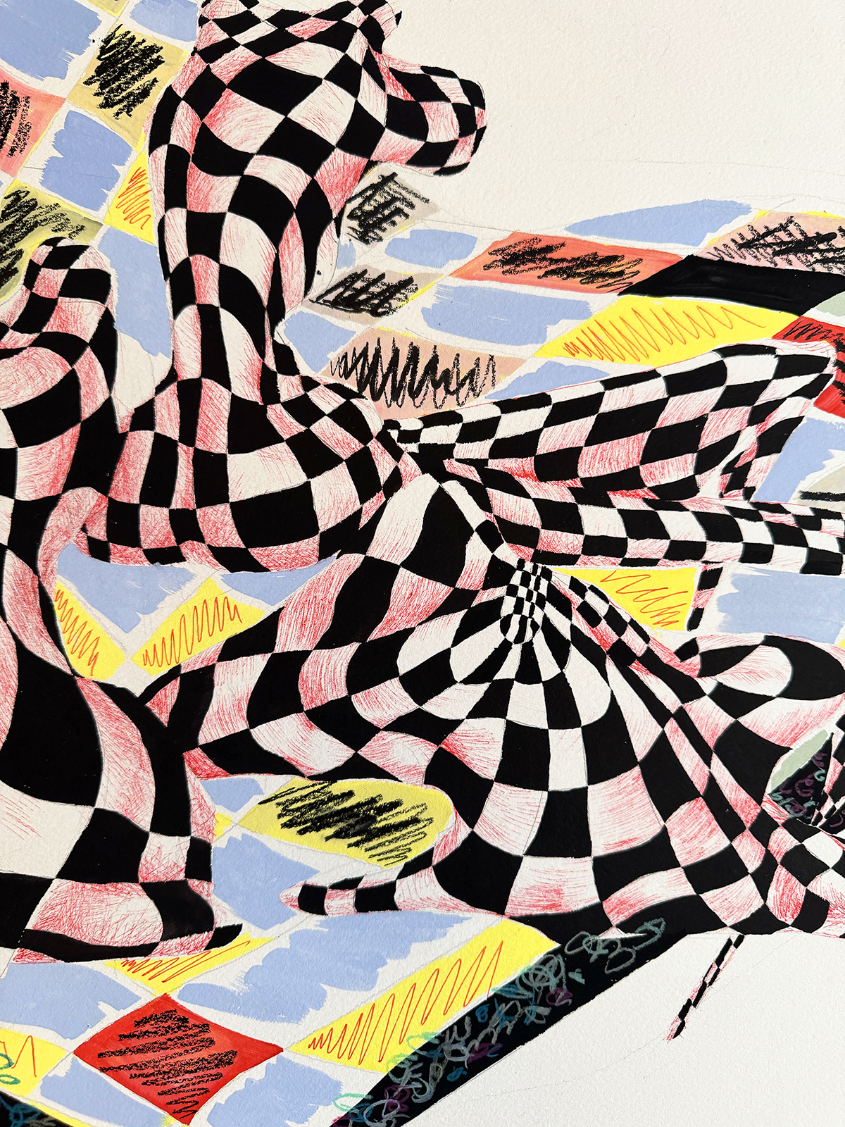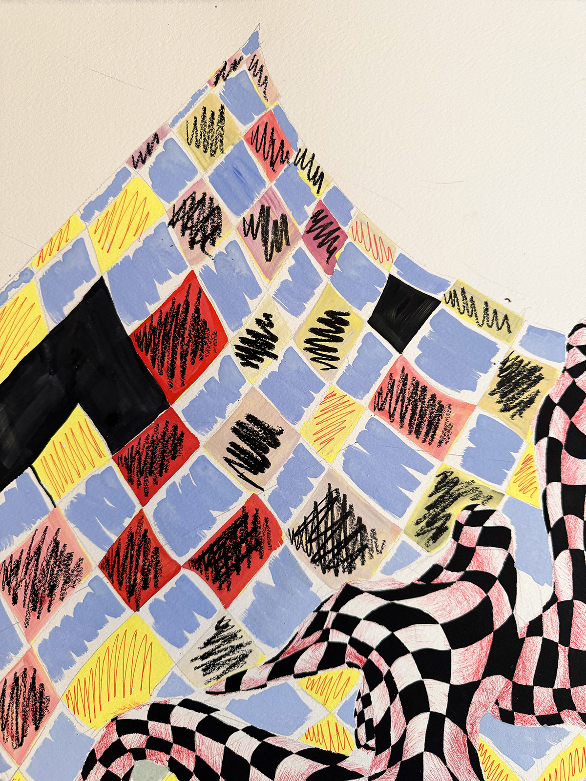 2025. 30" x 22". Pen, gouache, stabilo pencil, colored pencil, pencil.