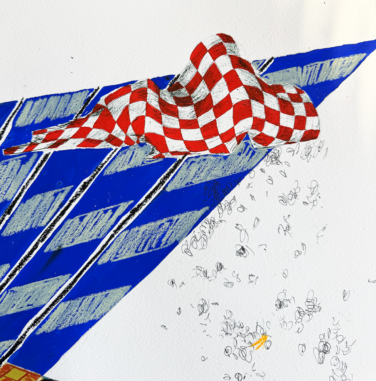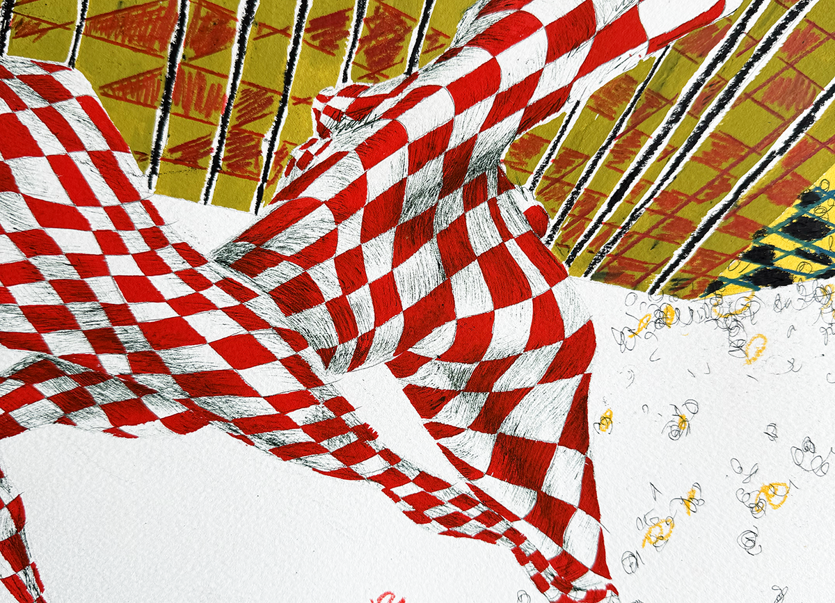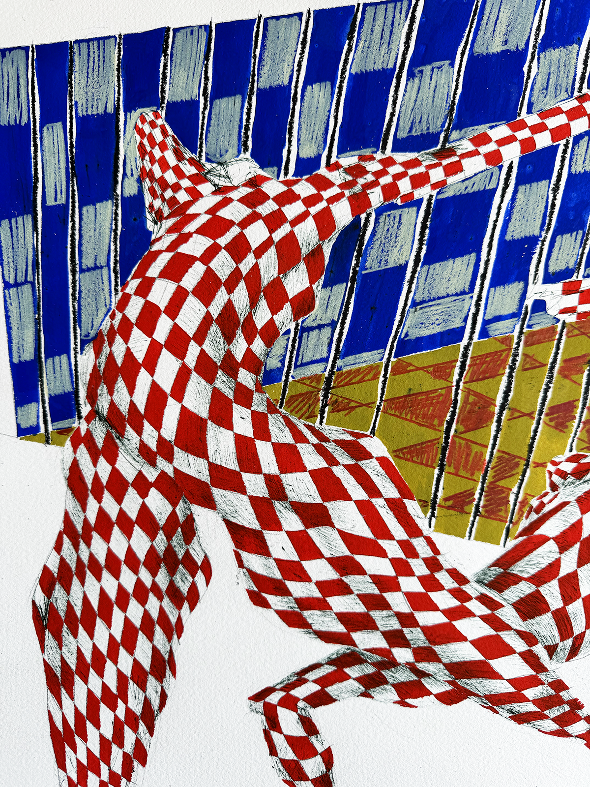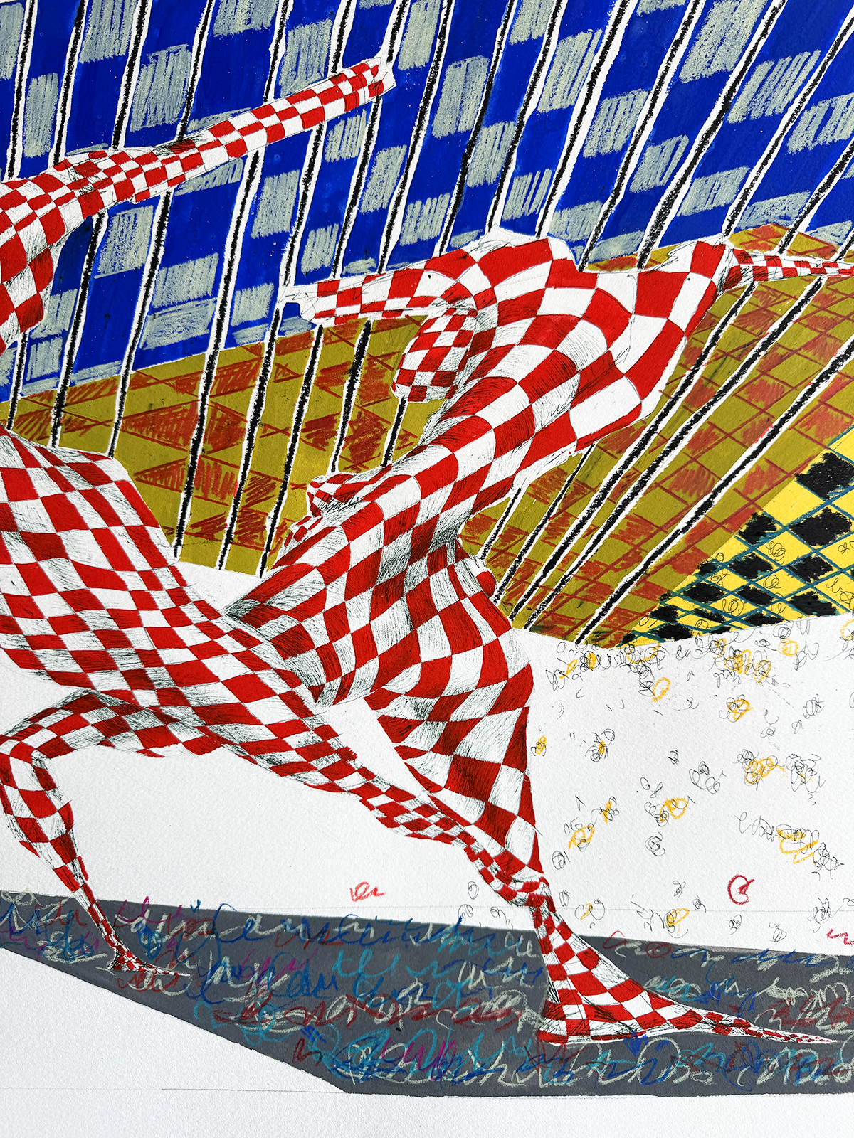 2025. 30" x 22". Pen, gouache, stabilo pencil, colored pencil, pencil.