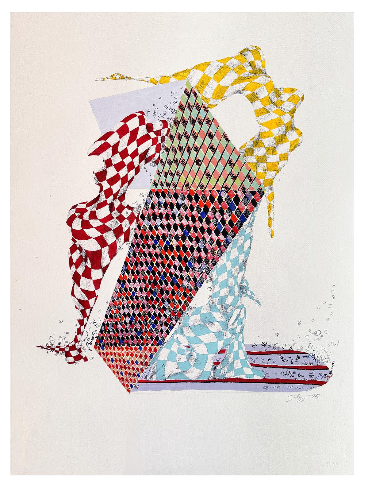 2025. Pen, gouache, stabilo pencil, pen pencil on paper. 30"W x 22"H.